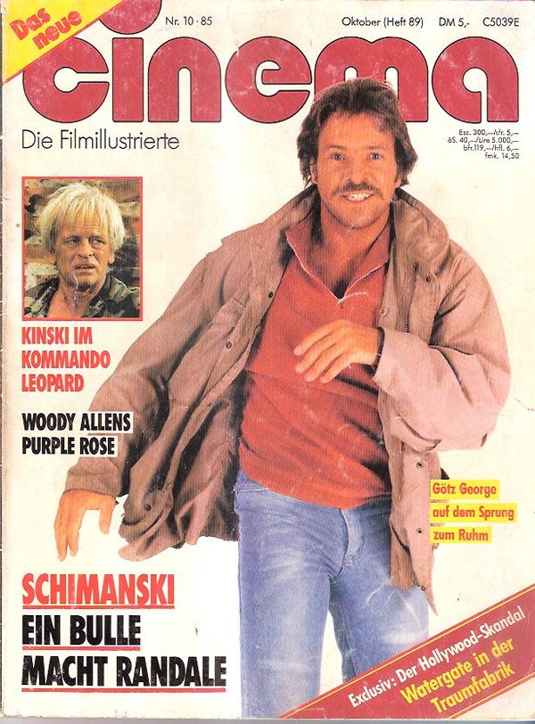Europas größte FilmzeitschriftCinema Nr. 10 /1985Titel: Schimanski - Ein Bulle macht Randale Magazin, 148 Seiten Format: 21 cm x 28 cmZustand: deutliche Gebrauchsspuren am CoverGenre: Film - Filmmagazin