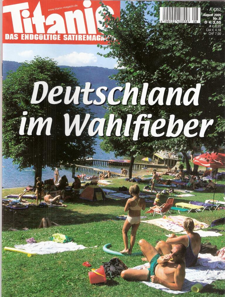 Titanic - Magazin August 2005Deutschland im WahlfieberMagazin, 66 Seiten Format: 21 cm x 28 cmGewicht: 138 gZustand: gut erhaltenes Exemplar