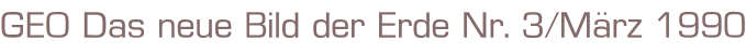 GEO - Das neue Bild der Erde Nr. 3/ März 1990Titel: Letzte Chance für den RegenwaldMagazin 152 SeitenFormat: 21 cm x 27 cmGewicht: 464 g Zustand: gut