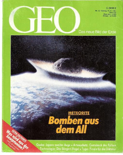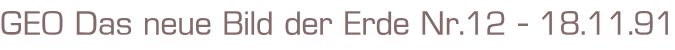 GEO - Das neue Bild der Erde Nr. 12 - 18.11.1991Titel: "Meteoriten Bomben aus dem All"Magazin 206 SeitenFormat: 21 cm x 27 cmGewicht: 602 g Zustand: gut