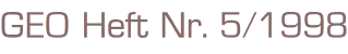 GEO - Das neue Bild der ErdeMagazin Mai 1998Format: 21,5 cm x 27 cmGewicht: 510 gZustand: gut erhaltenes Exemplar, kleinere Lagerspuren
