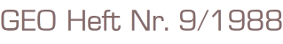 GEO - Das neue Bild der ErdeMagazin September 1988Format: 21,5 cm x 27 cmGewicht: 590 gZustand: gut erhaltenes Exemplar