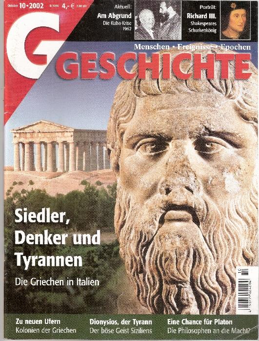 Menschen-Ereignisse-EpochenGESCHICHTE Nr. 10 - 2002 - Siedler, Denker und TyrannenDie Griechen in ItalienMagazin, 66 Seiten Format: 21 cm x 28 cmGewicht: 213 gZustand: gut erhaltenes Exemplar