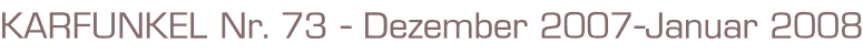 Zeitschrift für erlebbare GeschichteKarfunkel Nr. 73 - Dezember 2007-Januar 2008Magazin, 130 Seiten Format: 21 cm x 28 cmGewicht: 400 gZustand: gut erhaltenes Exemplar