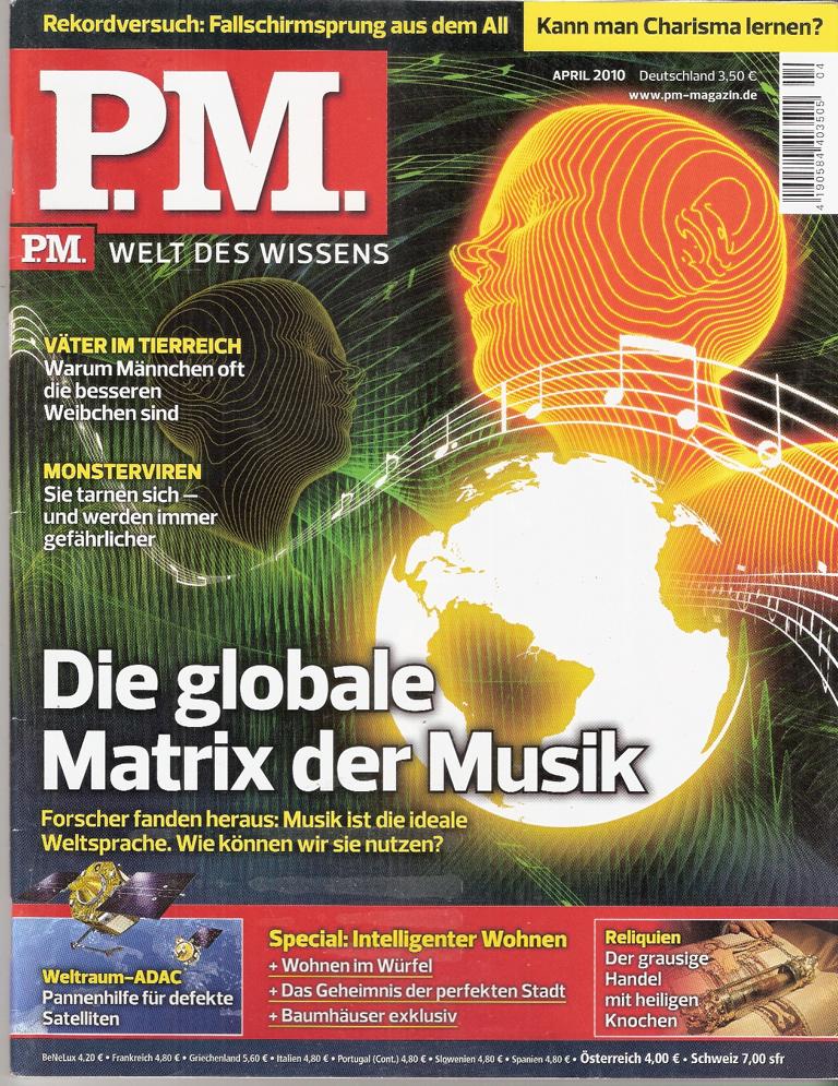 Peter Moosleitners Magazin P.M. Welt des Wissens 4/2010Titel: Die globale Matrix der MusikFormat: 22,5 x 28 cmZustand: gut