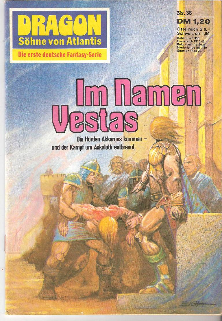 Dragon - Söhne von Atlantis - Die erste deutsche Fantasy-SerieTitel: Im Namen VestasAutor: Ernst VlcekVerlag: (c) Erich Pabel Verlag 1973 Romanheft, 66 SeitenFormat: 15,5 cm x 22,5 cm Gewicht: 75 gZustand: gut (Gebrauchs- bzw. Lagerspuren) Seite 63-68 rechts unten ein Stück Papier herausgerissen Fantasy