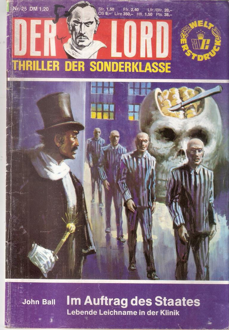 Der Lord Nr. 25 Autor: John Ball Titel: Im Auftrag des StaatesLebende Leichname in der KlinikVerlag: A. Eber Verlag, Sasbachwalden, Romanheft, 60 SeitenFormat: 15,5 x 22,5 cmZustand: leichtere Gebrauchsspuren