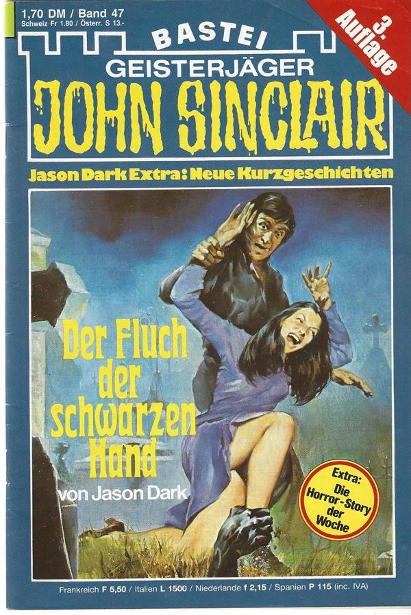John Sinclair II. Aufl. Nr. 47Titel: Der Fluch der schwarzen Hand.Die große Gruselserie von Jason DarkAutor: Dark JasonVerlag: Bastei7 Romanheft á 64 SeitenFormat: 15,5 cm x 22,5 cmZustand: sehr gut