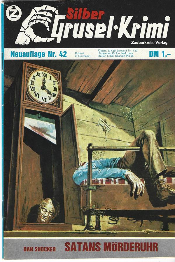 Silber Grusel Krimi Nr. 42Satans MörderuhrAutor: Dan ShockerVerlag: ZauberkreisRomanheft 60 SeitenFormat: 15,5 x 22,5 cmZustand: sehr gut, lediglich Seite 1 Namen des Vorbesitzers eingetragen.