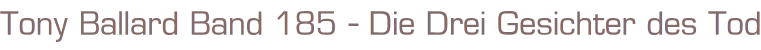 Tony Ballard Band 185 - Die Horror Serie von A.F.Morland Titel: Die drei Gesichter des Todes Verlag: Bastei - VerlagRomanheft 64 SeitenFormat: 15,5 cm x 22,5 cm Gewicht: 64 gZustand: gebraucht, gut erhalten