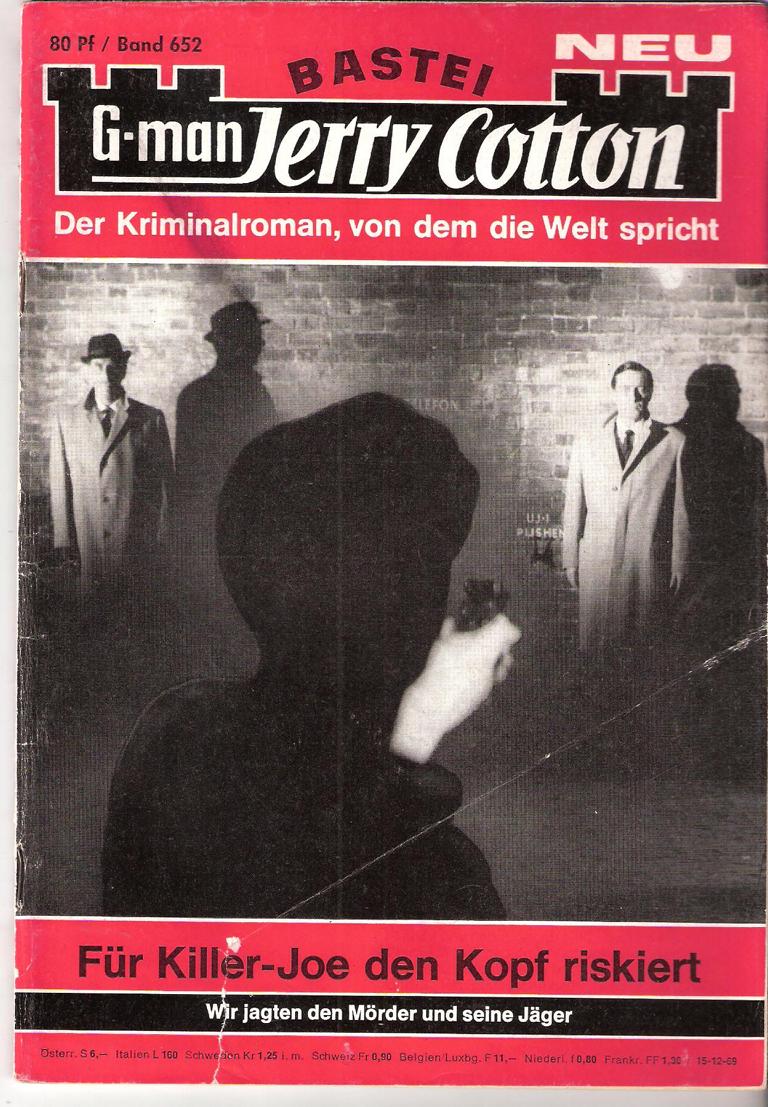 Kriminalroman - Jerry Cotton Titel: Für Killer-Joe den Kopf riskiertAutor: Jewrry CottonVerlag: Bastei-Verlag Romanheft 64 SeitenFormat: 15,5 cm x 22,5 cm Gewicht: 70 gZustand: Lager- und Gebrauchsspuren,Cover vorne geklebt (Tesa)