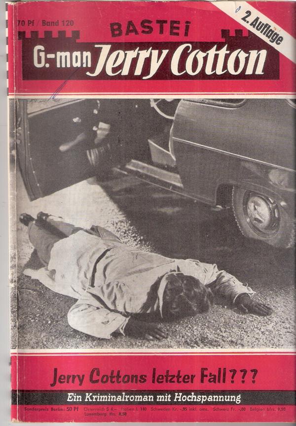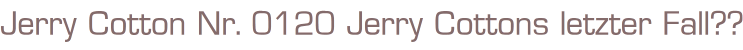 Jerry Cotton Nr. 0120 Jerry Cottons letzter Fall??2. AuflageBastei Verlag Romanheft 64 SeitenFormat: 15 x 22,5 cmGewicht: 73 gZustand: gut , mit leichten Gebrauchs- bzw.Lagerspuren