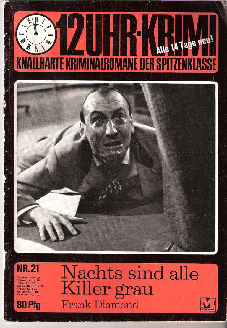 Knallharte Kriminalromane der Spitzenklasse - 12 Uhr KrimiTitel: Nachts sind alle Killer grauAutor: Frank DiamondVerlag: Moewig-Verlag (c) 1961Romanheft 65 SeitenFormat: 15,5 cm x 22,5 cm Gewicht: 72 gZustand: Lager- und Gebrauchsspuren,