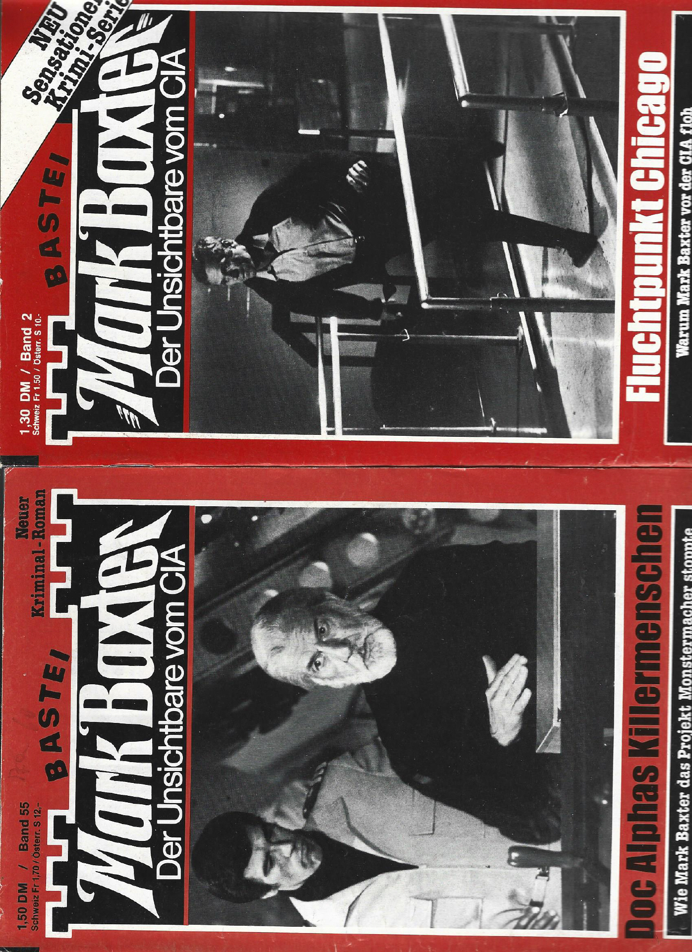Mark Baxter Nr. 02 + 55.Nr. 02) Fluchtpunkt Chicago. Warum Mark Baxter vor der CIA floh.Nr. 55) Doc Alphas Killermenschen. Woe Mark Baxter das ProjektMonstermacher stoppte.Bastei Verlag Bergisch-Gladbach Romanheft á 64 SeitenFormat: 15,5 x 22,5 cm x 2 HefteZustand: sehr gut erhaltene Exemplare