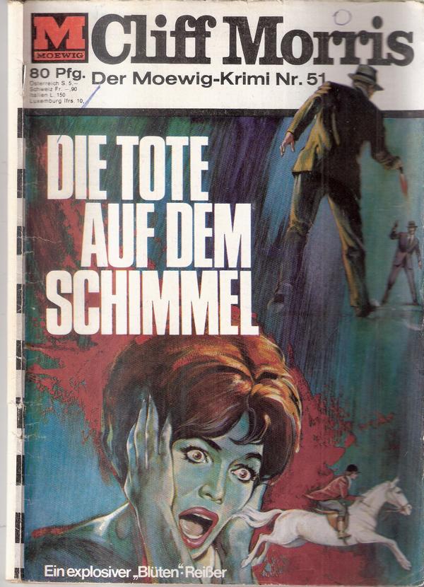 Cliff Morris Der Moewig Krimi Nr. 051 Titel: Die Tote auf dem SchimmelAutor: Cliff MorrisVerlag: Moewig Verlag München Romanheft 63 SeitenFormat: 15 x 22,5 cmGewicht: 73 gZustand: gut, leichte Gebrauchsspuren