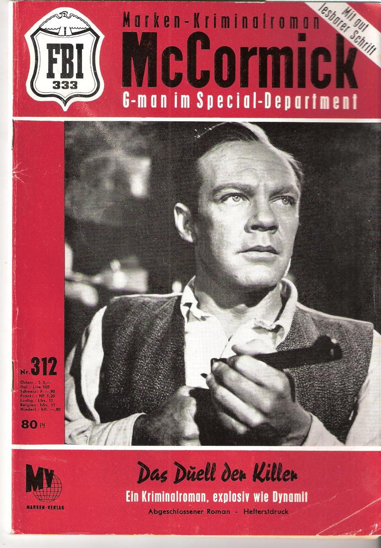 Kriminalroman - G-man im Spezial-DepartmentTitel: Das Duell der KillerAutor: Rex McCormickVerlag: Marken-Verlag 1964Romanheft 62 SeitenFormat: 15,5 cm x 22,5 cm Gewicht: 72 gZustand: Lager- und Gebrauchsspuren, gut