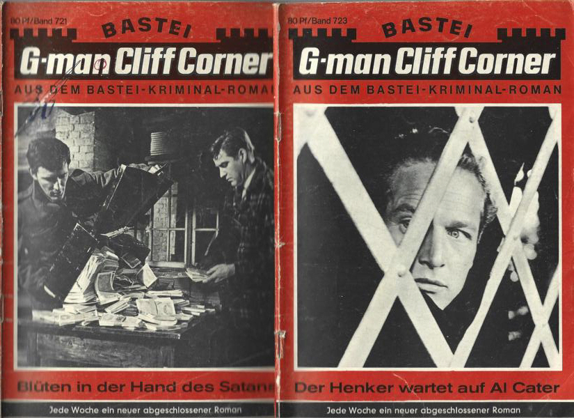 G-man Cliff Corner Nr. 721 + 723 2 HefteNr. 721) Blüten in der Hand des Satans. Nr. 723) Der Henker wartet auf Al Carter.Verlag: Bastei Verlag 2 Stück Romanhefte á 64 SeitenFormat: 15 x 22 x 5 cmZustand: gut, leichte Gebrauchsspuren