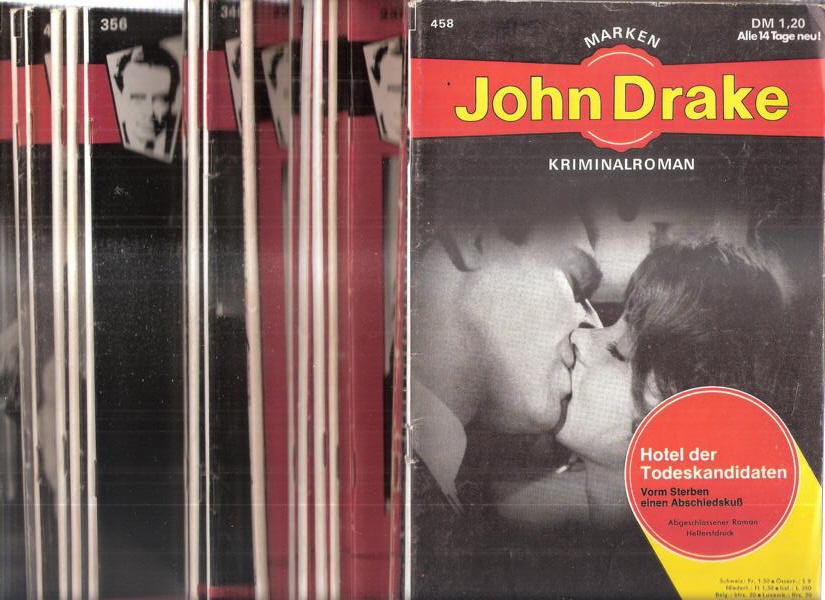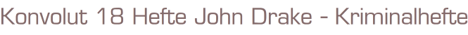Konvolut 18 Hefte John Drake - Kriminalhefte Nr. 66, 226, 239, 261, 280, 285, 290, 296,340, 346, 350, 356, 373, 377, 420, 453,460 und 458Marken Verlag, Köln18 Romanhefte à 63 SeitenFormat: 15 x 22 x 6 cmZustand: leichte Gebrauhsspuren