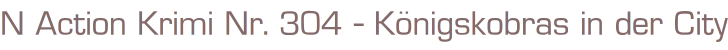 Action Krimi Nr. 304Titel: Königskobras in der Cityvon Phil. E. SandersVerlag: Neuzeit Verlag, AugsburgRomanheft, 65 SeitenFormat: 15 x 22,3 cmZustand: gut, leichte Gebrauchsspure(unten Wasserrand)
