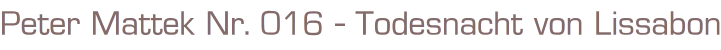 Peter Mattek Nr. 16Der Mann für SonderfälleTitel: Todesnacht von LissabonIhre Spur führte ins Auge desHurrikansAutor: Peter HebelVerlag: BasteiRomanheft 64 SeitenFormat: 15,5 x 22,5 cmGewicht: 65 gZustand: sehr gutKriminalroman