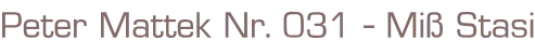 Peter Mattek Nr. 31Der Mann für SonderfälleTitel: Miß StasiKrimi mit dem Bundesbullen vom SK1Autor: Peter HebelVerlag: BasteiRomanheft 64 SeitenFormat: 15,5 x 22,5 cmGewicht: 65 gZustand: sehr gutKriminalroman