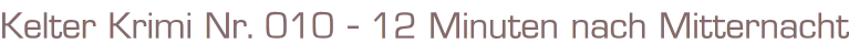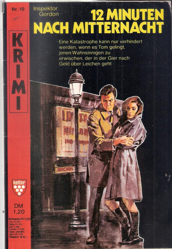 Kelter Krimi Nr. 010 Titel: 12 Minuten nach MitternachtAutor: Inspektor GordonVerlag: Kelter Verlag HamburgRomanheft 64 SeitenFormat: 15,5 x 22,5 cmGewicht: 65 gZustand: sehr gutKriminalroman