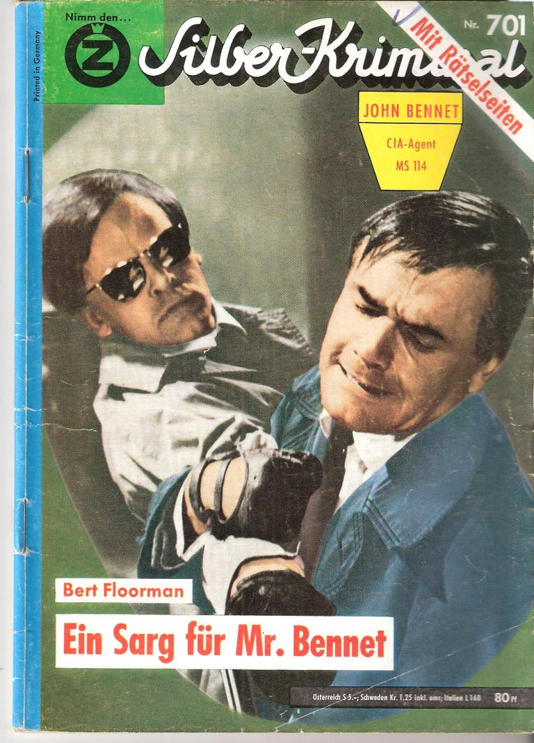 Silber-Kriminal Titel: Ein Sarg für Mr. Bennet - John Bennet CIA-Agent MS 114Autor: Bert FloormanVerlag: Zauberkreis-VerlagRomanheft 60 SeitenFormat: 15,5 cm x 22,5 cm Gewicht: 72 gZustand: Lager- und Gebrauchsspuren,Papier teilweise fleckig