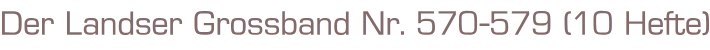 Der Landser Grossband Nr. 570-579 (10 Hefte)Erlebnisberichte zur Geschichte des Zweiten WeltkriegesPabel - Moewig Verlag Rastatt10 Stück RomanhefteFormat: 15 x 22 x 3,5cmZustand: sehr gut