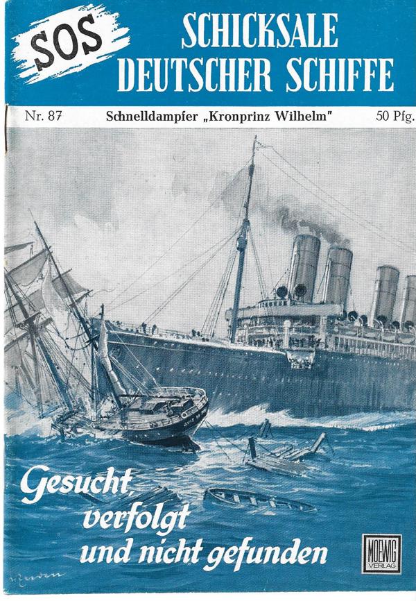 Schnelldampfer "Kronprinz Wilhelm".Gesucht, verfolgt und nicht gefunden.Autor: Otto MielkeVerlag: Moewig Verlag München 1956Romanheft 32 SeitenFormat: 15 x 21 cmZustand: gut, altersbedingte Standspuren
