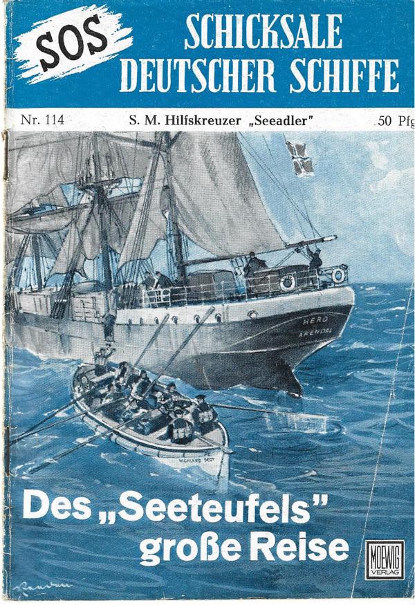 S.M.Hilfskreuzer "Seeadler"Des "Seeteufels" große Reise.Autor: Otto MielkeVerlag: Moewig Verlag München 1957Romanheft 32 SeitenFormat: 15 x 21 cmZustand: Gebrauchsspuren,Seite 1 beschrieben, Papier leicht nachgedunkelt.