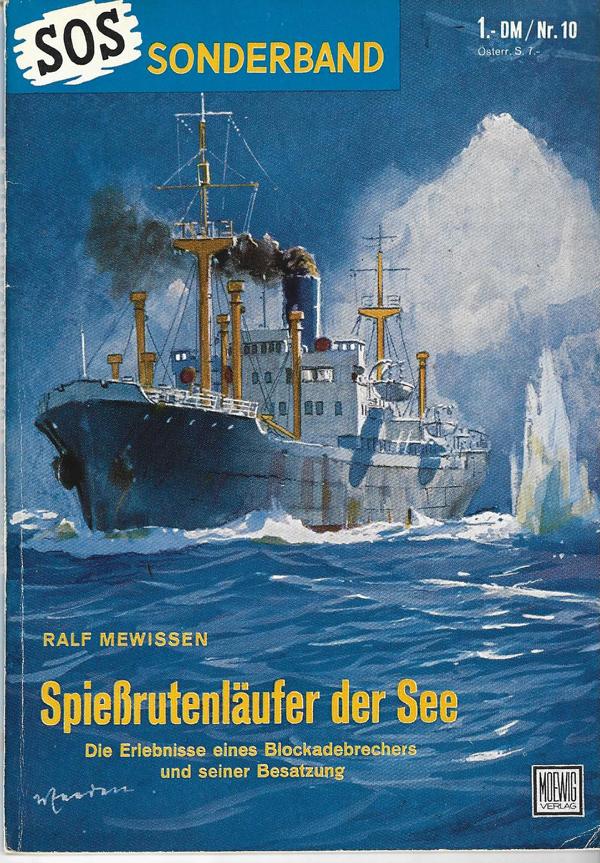 Spießrutenläufer der See.Die Erlebnisse eines Blockadebrechersund seiner Besatzung.Autor: Ralf MewissenVerlag: Moewig Verlag München 1958Romanheft 96 SeitenFormat: 14 x 19,5 x 0,6 cmZustand: gut, Papier altersbedingt leicht nachgedunkelt.