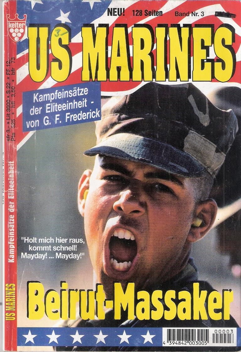 US MARINES Band 03 - Kampfeinsätze der EliteeinheitTitel: Beirut-MassakerAutor: G. F. FrederickVerlag: Martin Kelter Verlag HamburgRomanheft 130 SeitenFormat: 15 x 22,5 x 0,5 cmGewicht: 112 gZustand: gut, mit leichten Gebrauchsspuren