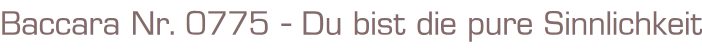 BACCARA Nr. 775 Titel: Du bist die pure SinnlichkeitAutor: Barbara BoswellCora Verlag 1994Heft, Format: 13 cm x 18 cmGewicht: 95 gZustand: leichte Gebrauchsspuren