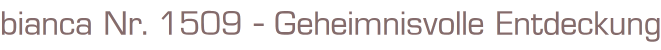 BIANCA Nr. 1509 - Neue Liebe neues GlückTitel: Geheimnisvolle EntdeckungAutor: Mary BurtonCora Verlag 2006Heft, Format: 13 cm x 18 cmGewicht: 90 gZustand: gut, leichte Gebrauchsspuren
