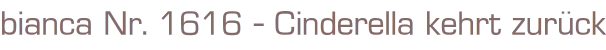 BIANCA Nr. 1616 Titel: Cindarella kehrt zurückAutor: Victoria PadeCora Verlag 2008Heft, Format: 13 cm x 18 cmGewicht: 110 gZustand: gut, leichte Gebrauchsspuren