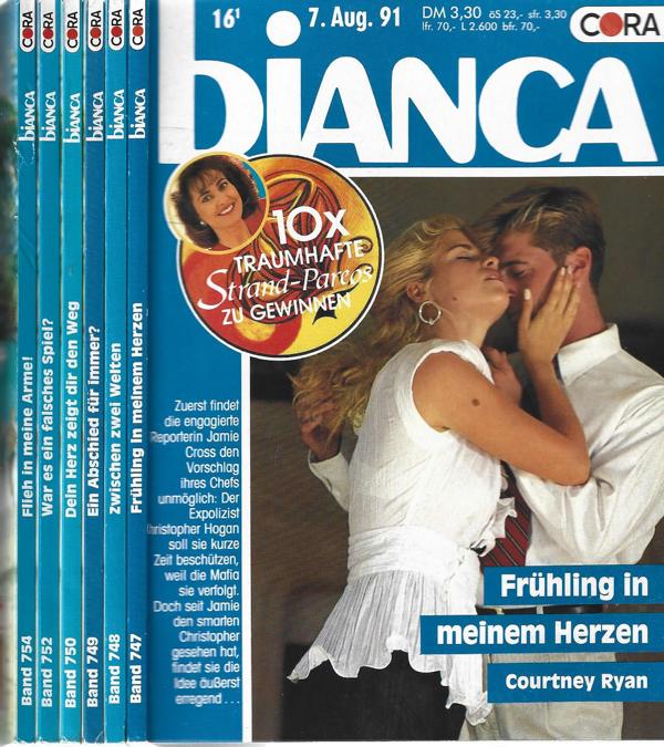 Bianca Romanhefte 1991 (6 Stück)Band Nr.: 747,748,749,750.752,754.Verlag: Cora, 1991 Berlin6 Romanhefte á 128 SeitenFormat: 13 x 18,3 x 0,5 cm x 6 StückZustand: sehr gut