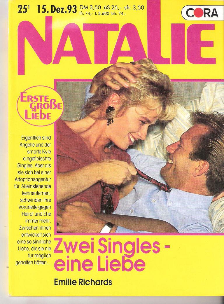 NATALIE Nr. 608Titel: Zwei Singles - eine LiebeAutor: Emilie RichardsCora Verlag 1993Taschenbuch, Format: 13 cm x 18 cmGewicht: 95 gZustand: sehr gut