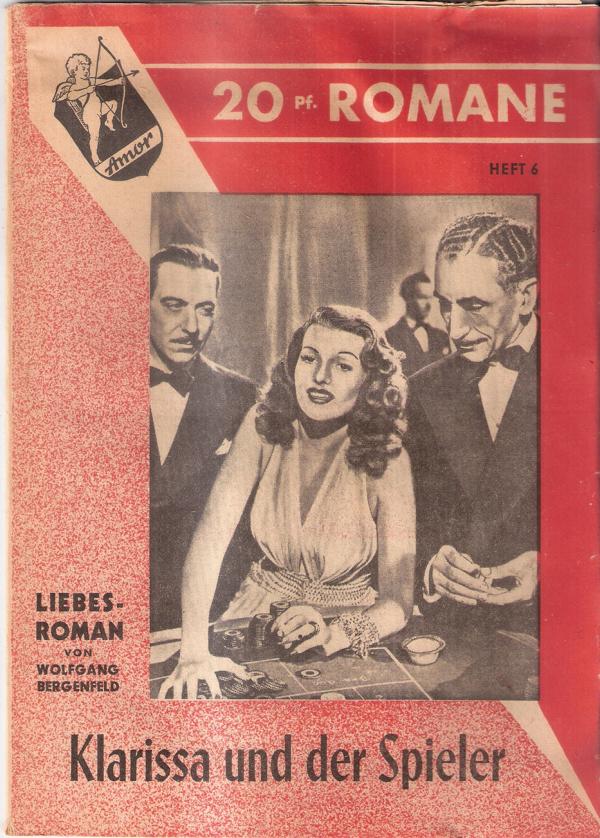 Amor 20 Pf. Romane Heft 06Titel: Klarissa und der SpielerAutor: Wolfgang BergenfeldVerlag: Agira Verlag, Hamburg und EssenRomanheft 23 SeitenFormat: 18,5 cm x 25,5 cmZustand: gut, leichte Gebrauchsspuren