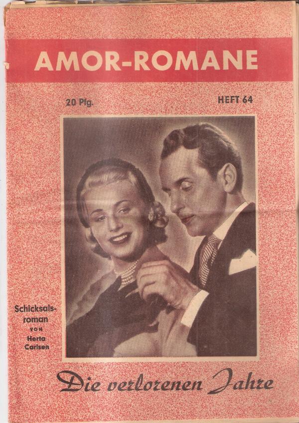 Amor-Romane Heft 64SchicksalsromanTitel: Die verlorenen JahreAutor: Herta CarlsenVerlag: Agira Verlag, Hamburg und EssenRomanheft 23 SeitenFormat: 18,5 cm x 25,5 cmZustand: gut, leichte Gebrauchsspuren