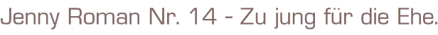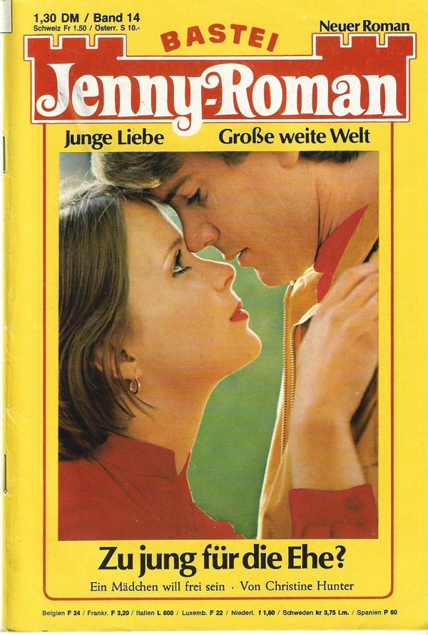Jenny Roman Nr. 14 - Zu jung für die Ehe.Autor: Christine HunterVerlag: BasteiRomanheft 65 SeitenFormat: 15 x 22,5 cmZustand: gut, leichte Gebrauchsspuren