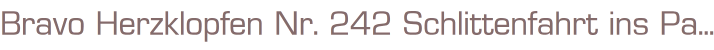 Bravo Herzklopfen Nr. 242Schlittenfahrt ins Paradis.Verlag: Erich Pabel - Arthur MoewigRastatt (c) 1994Taschenbuch, 126 SeitenFormat: 13,5 x 18,2 x 0,5 cmZustand: leichte Gebrauchsspuren,Schnitt bis Seite 20 ausgefranst