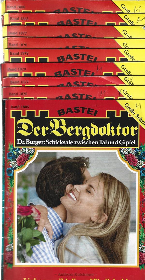 Der Bergdoktor 10 Romane in großer SchriftNr. 1805,1820,1827,1829,1872,1876,1877,1885,1886,1895.Bastei Verlag10 St. Romanhefte á 64 Seiten Format: 15 x 22 cm Zustand: gut