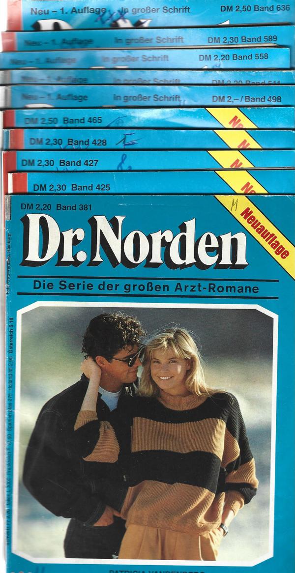 Dr. Norden 10 Romanhefte in großer SchriftNr. 381,425,427,428,465,498,511,558,589,636.Autor: Patricia VandenbergVerlag: Kelter Hamburg10 St. Romanhefte á 64 Seiten Format: 15 x 22 cm x 10 HeftteZustand: gut, leichte Gebrauchsspuren
