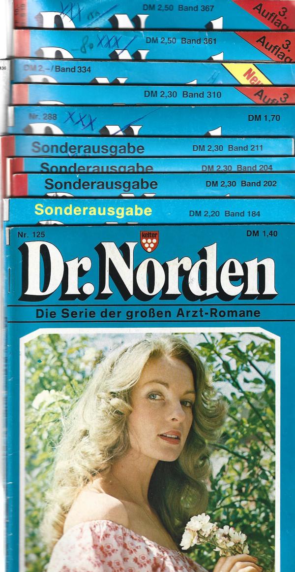 Dr. Norden 10 Romanhefte in großer SchriftNr. 125,184,202,204,211,288,310,334,361,367.Autor: Patricia VandenbergVerlag: Kelter Hamburg10 St. Romanhefte á 64 Seiten Format: 15 x 22 cm x 10 HeftteZustand: gut, leichte Gebrauchsspuren