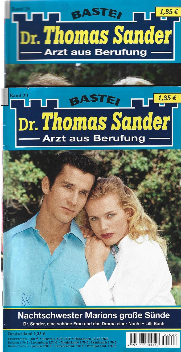 Dr. Thomas Sander Nr. 20 + 29Nr. 20 Nur Dr. Sander glaubte ihrNr. 29 Nachtschwester Marions größte SündeBastei Verlag, Zwei Romanheft, á 64 SeitenFormat: 15,5 cm x 22,5 cm Zustand: gut