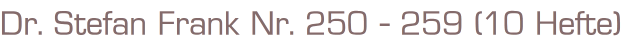 Dr. Stefan Frank Nr. 250 - 259 (10 Hefte)Bastei Verlag10 Romanhefte á 60 SeitenFormat: 15,5 x 22,5 cmZustand: sehr gut
