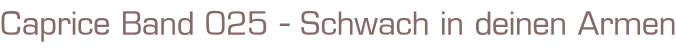 Caprice Große Romane um Liebe und Leidenschaft Band 25 Titel: Schwach in deinen Armen Autor: Doris Parmett Verlag: Bastei 1990 Heft, Softcover, 126 Seiten Format: 13,5 cm x 19 cmGewicht: 104 gZustand: gebraucht, gut