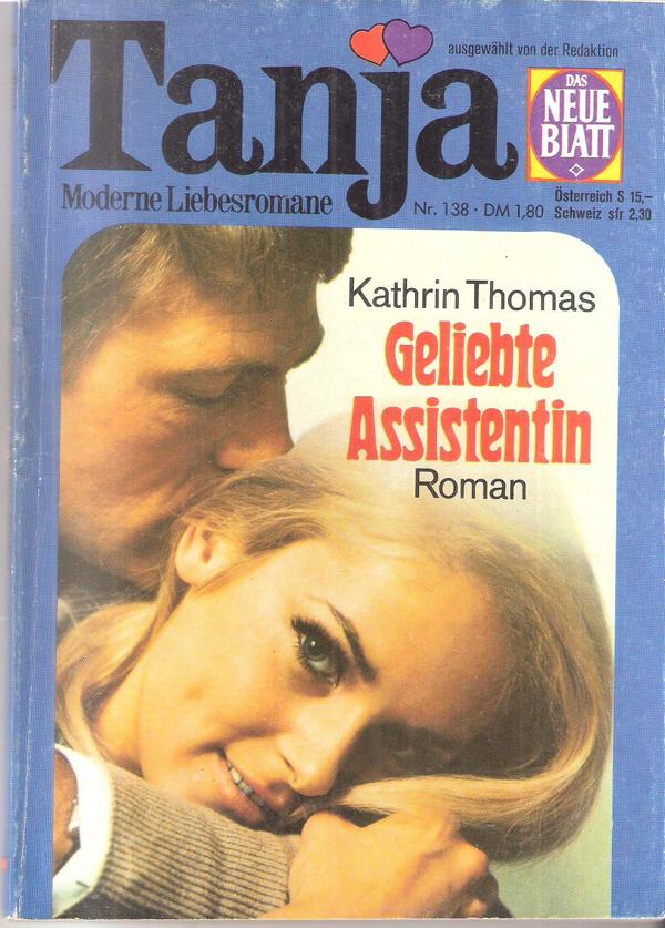 Tanja Moderne Liebesromane Nr. 138Titel: Geliebte AssistentinAutor: Kathrin ThomasVerlag: Pabel 1976 Heft, Softcover, 128 Seiten Format: 13,5 cm x 19 cmGewicht: 100 gZustand: gebraucht, gut