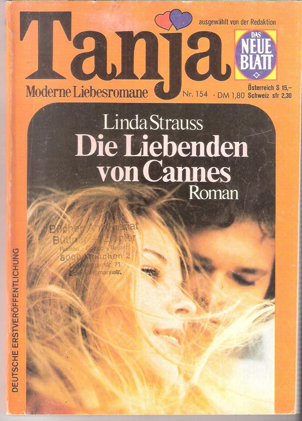 Tanja Moderne Liebesromane Nr. 154Titel: Die Liebenden von Cannes Autor: Linda Strauss Verlag: Pabel 1976 Heft, Softcover, 128 Seiten Format: 13,5 cm x 19 cmGewicht: 100 gZustand: gebraucht, gut