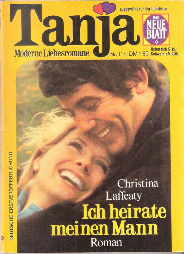 Tanja Moderne Liebesromane Nr. 114Titel: Ich heirate meinen Mann Autor: Christina Laffeaty Verlag: Pabel 1976 Heft, Softcover, 126 Seiten Format: 13,5 cm x 19 cmGewicht: 103 gZustand: gebraucht, gut